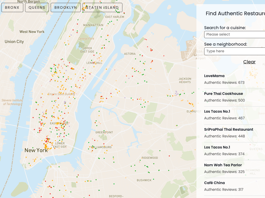 Analyzing 3.5 million reviews and visualizaing authentic restaurants in New York City.